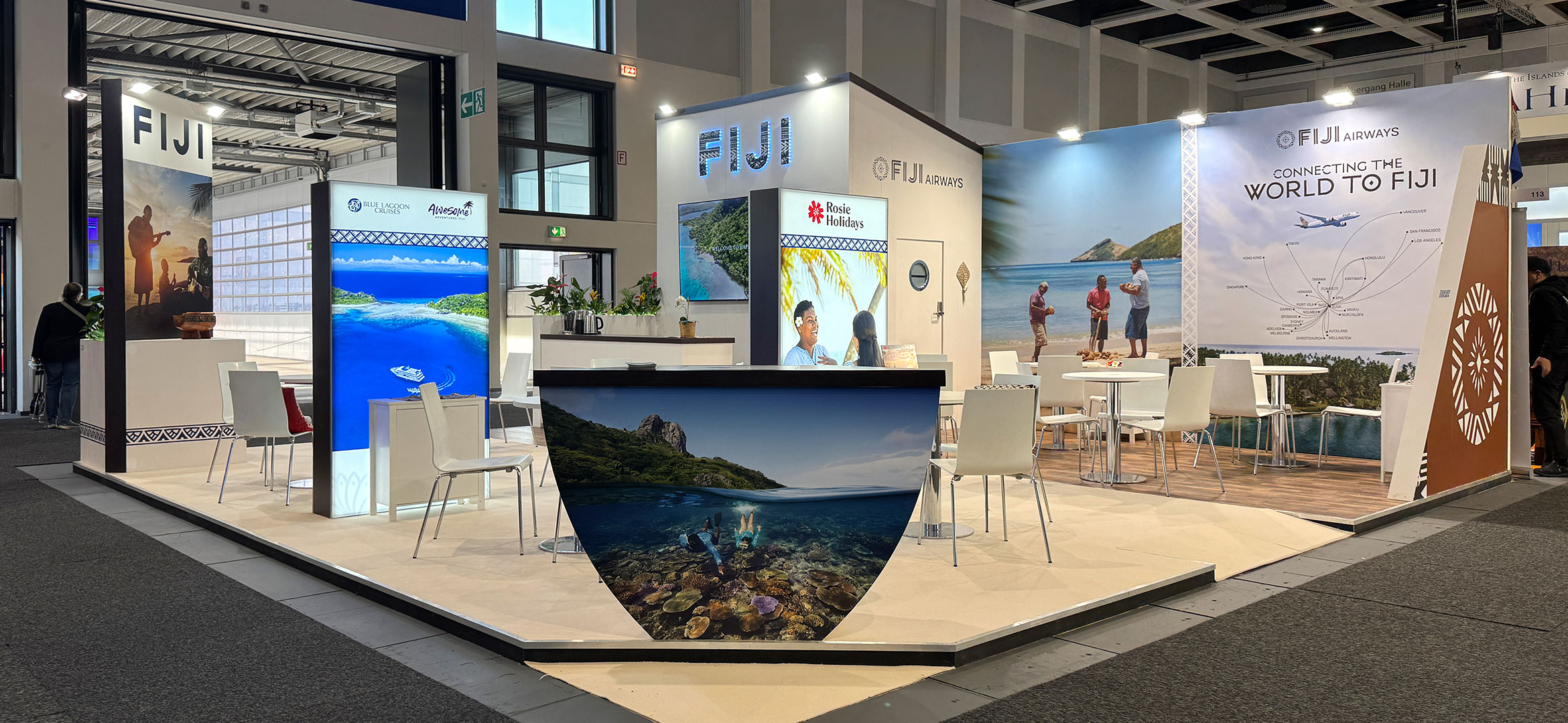 Conscience Creative have been designing and building the Tourism Fiji stand at ITB in Berlin for the last 10 years. Each booth design has reflected the traditions, friendliness and beauty of Fiji in an eye-catching yet cost-effective way.