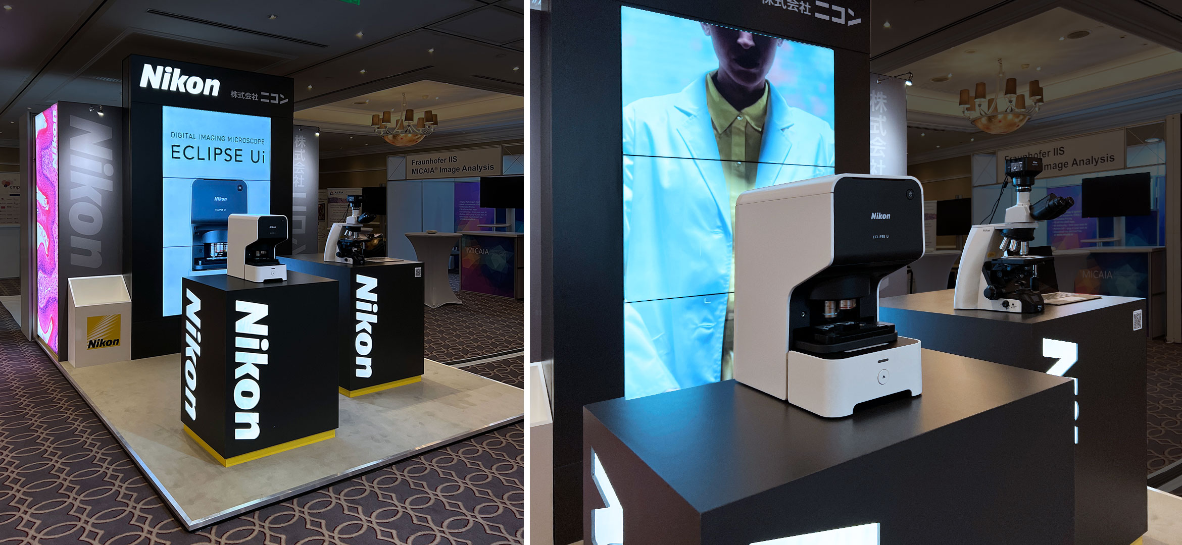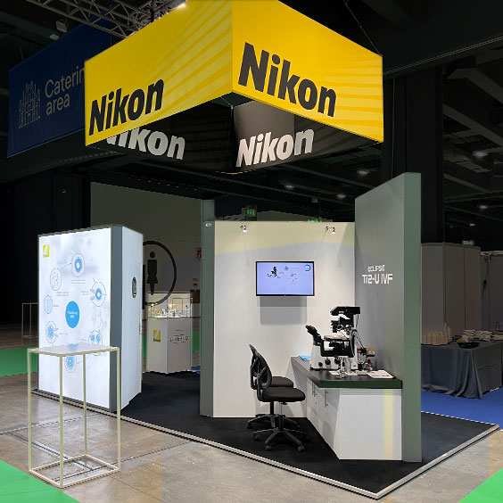 An example of how the modular design we created for Nikon could be adapted for smaller spaces. This booth at ECDP in Budapest was eyecathing and maintained Nikon’s presence even in smaller venues.