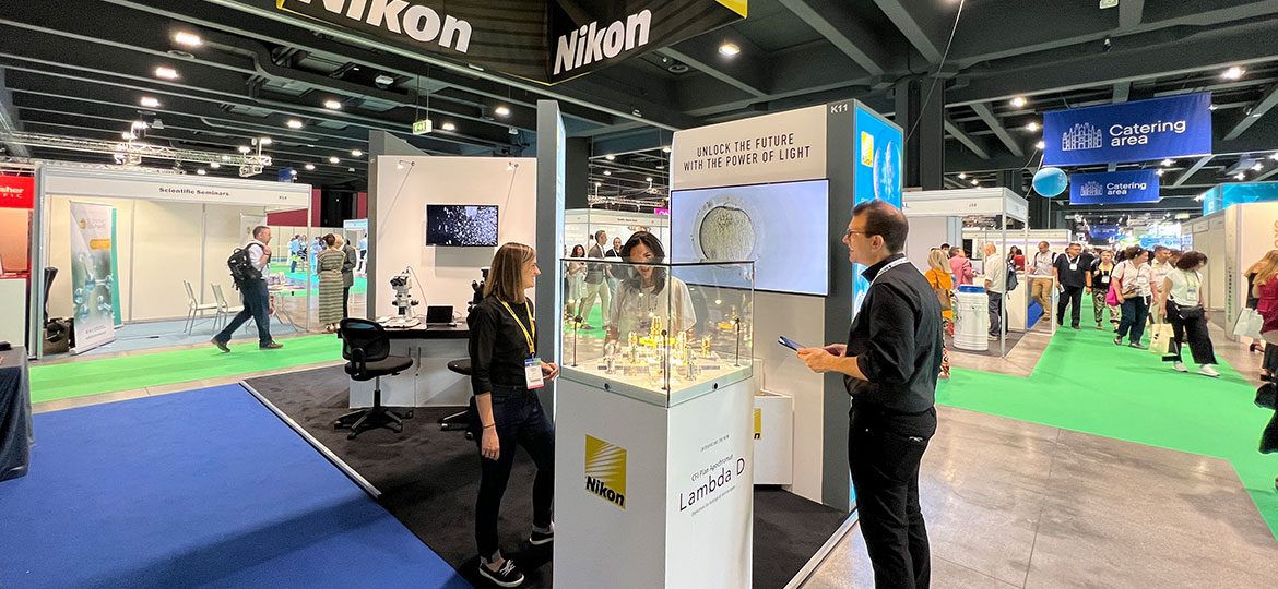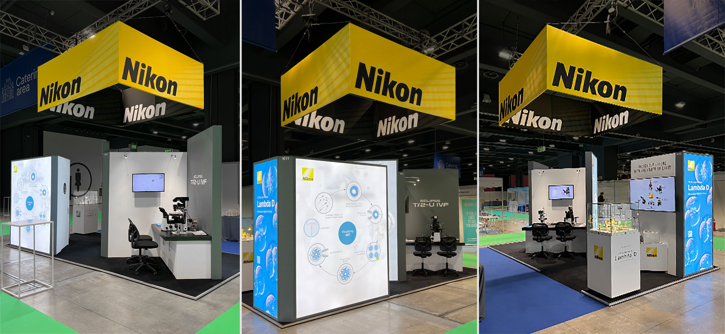 Re-utilising existing lightboxes and other components, CCP designed the Nikon stand at ESHRE to be light, open and eye-catching. Working with Duncan Sword Construction the stand certainly drew the eye and Nikon’s 3 IVF focussed systems were visually prominent and easily available.