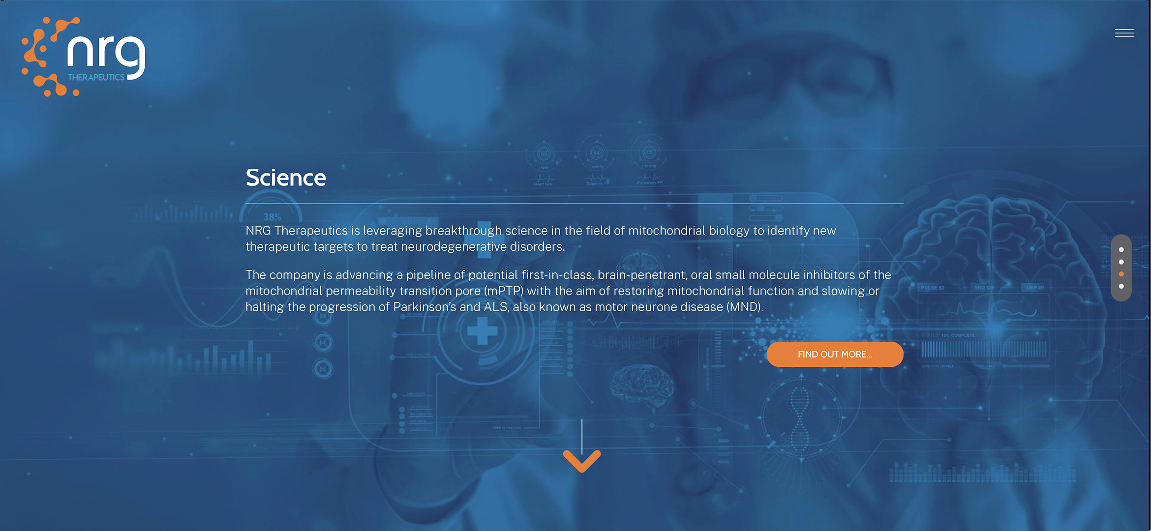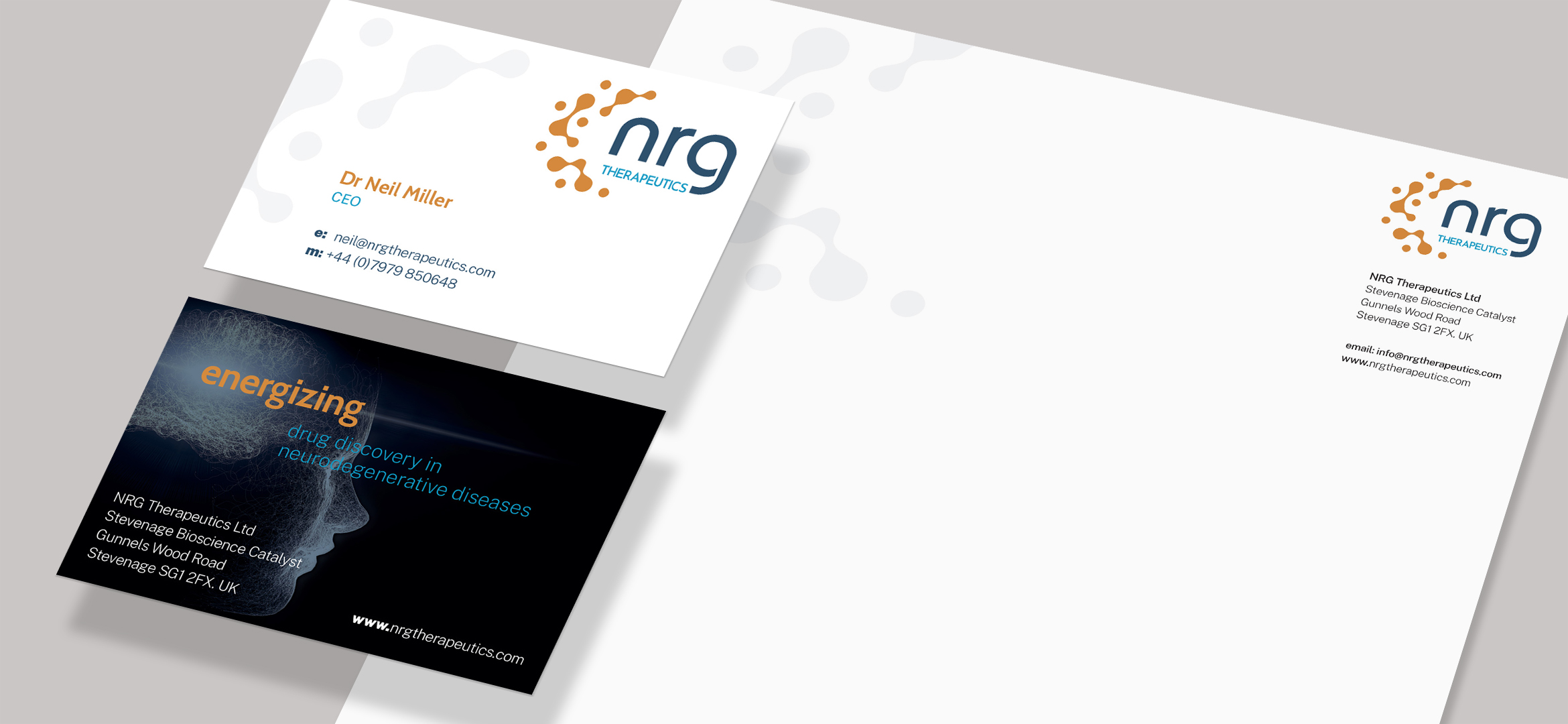 Conscience Creative were commissioned to create a new corporate identity for NRG Therapeutics. The new brand logo idea relects neurological pathways and the bold use of stong colours help to communicate NRG’s key messaging. The project branding new corporate stationary, New Powerpoint investor deck and a website using the hamburger menu system with a multi page sliding home page sequence.