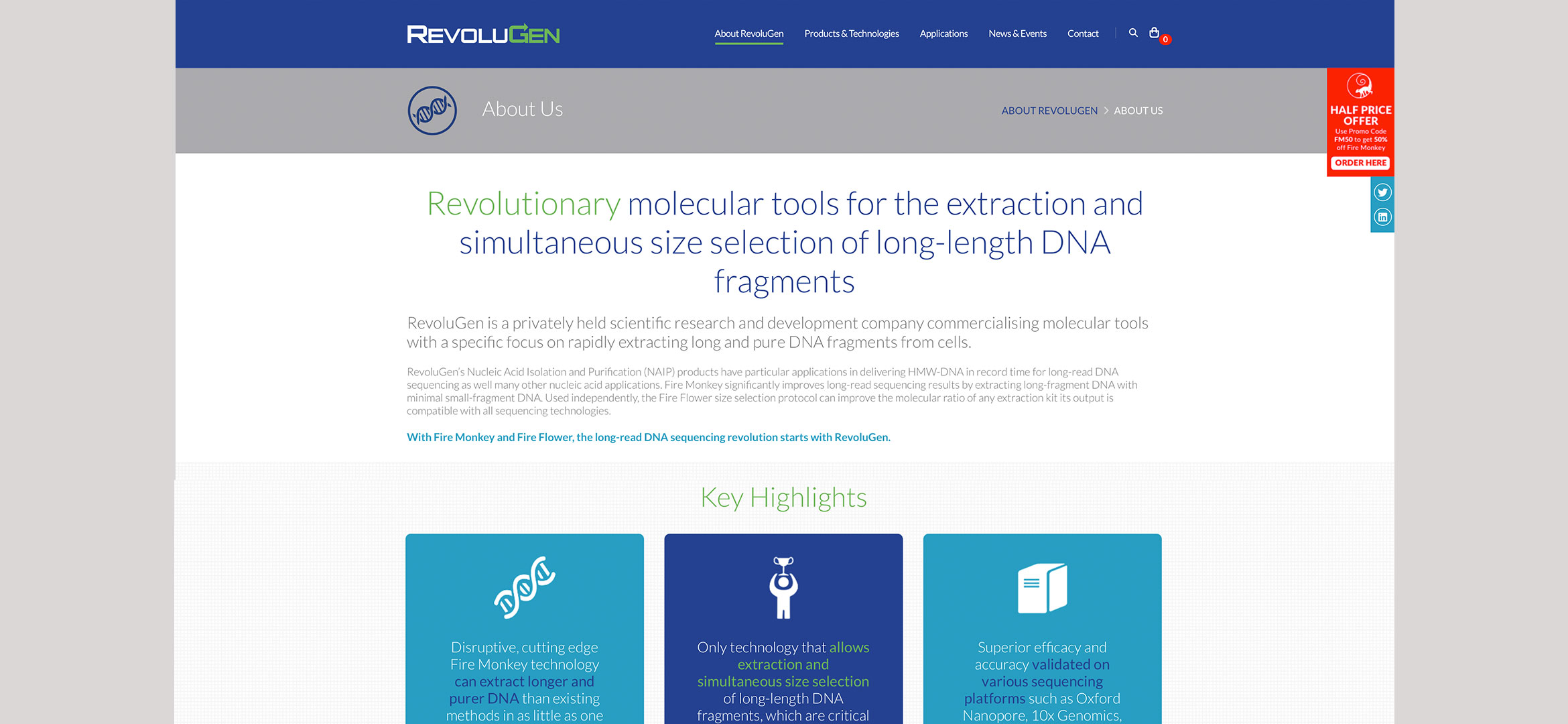 We recently launched a new website to reposition Revolugen who manufacture and supply DNA testing kits. The website features a new e-commerce section whilst the corporate part of the site is targeted at investors and potential partnerships.